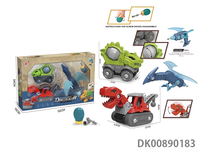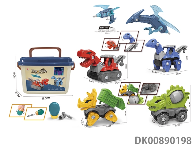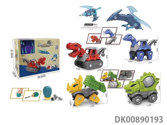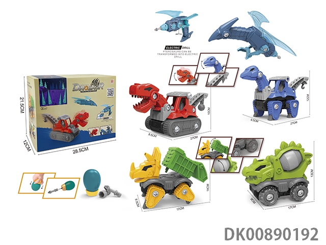 Taxiing function and sound * 4 diy tyrannosaurus rex engineering vehicles, stegosaurus mixer vehicles, brachiosaurus engineering vehicles, triceratops sanitation vehicles and pterosaur deformation electric drills (electric drills do not include 2 * aa)