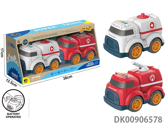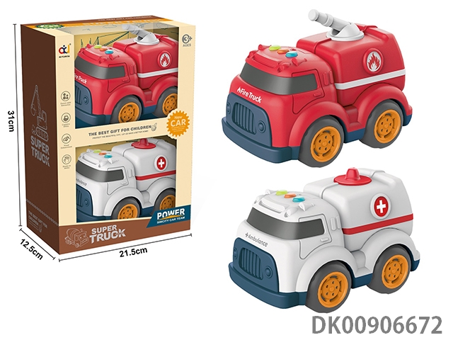 Cartoon taxi engineering vehicle with light and music (medical vehicle and fire engine)