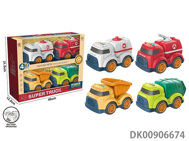 Cartoon taxi engineering vehicle set with light and music (medical vehicle, fire vehicle, dirt vehicle and sanitation vehicle)
