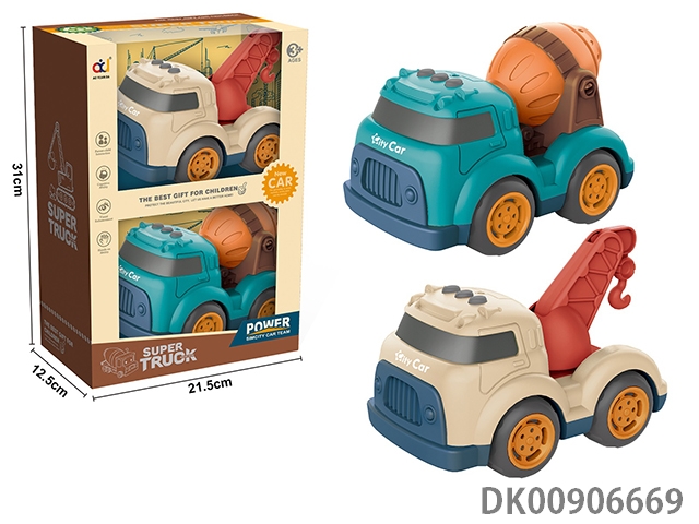 Cartoon sliding engineering vehicle (crane and mixer)