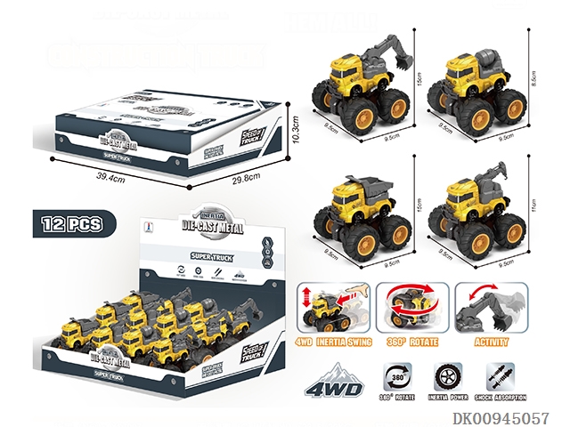 Four drive double inertia stunt alloy engineering vehicle 12pcs/box