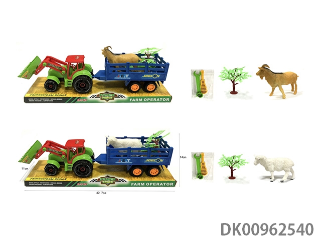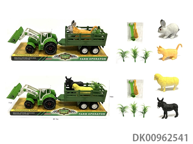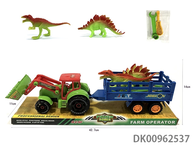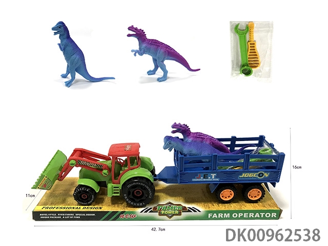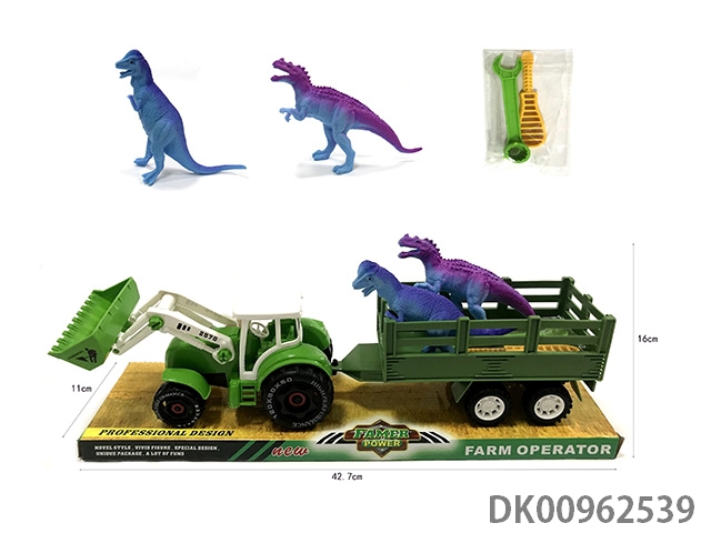 Sliding disassembly and assembly of 2 dinosaurs on farmer’s vehicle
