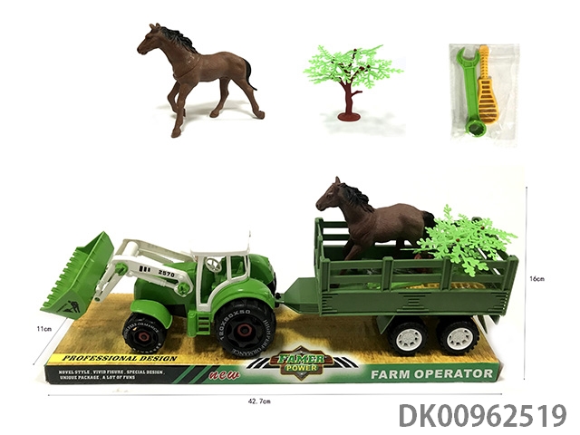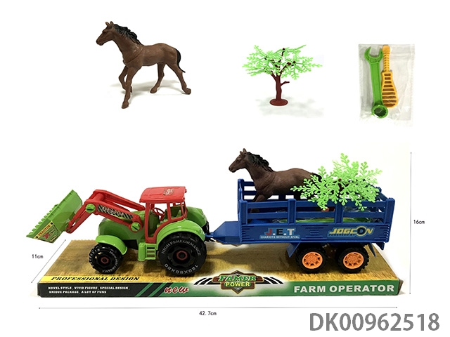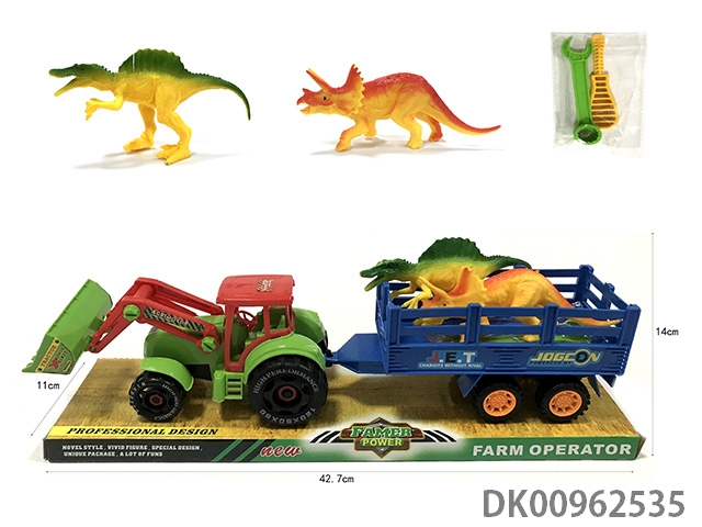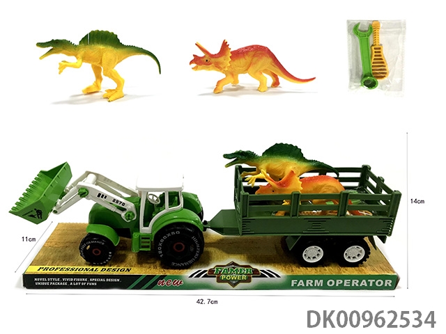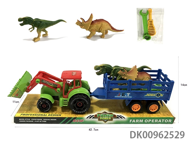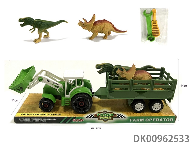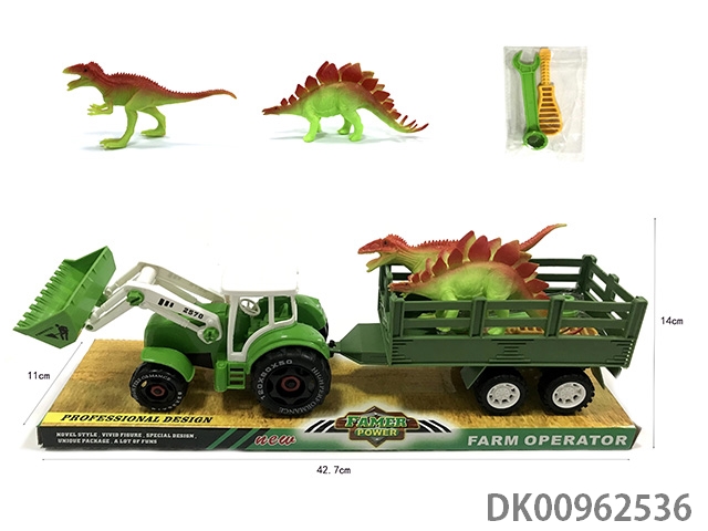 Sliding disassembly and assembly of 2 dinosaurs on farmer’s vehicle