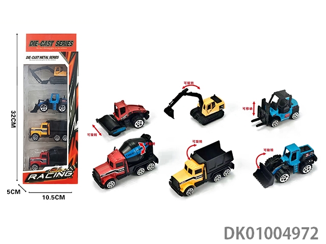 4 Strip mounted 1:64 alloy sliding engineering vehicles (6 mixed)