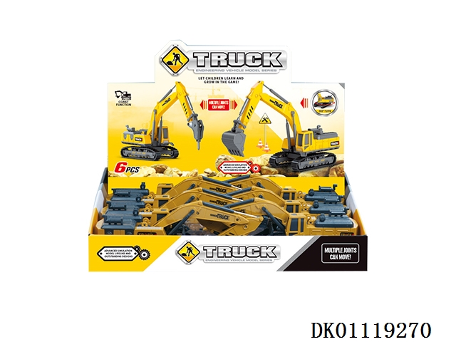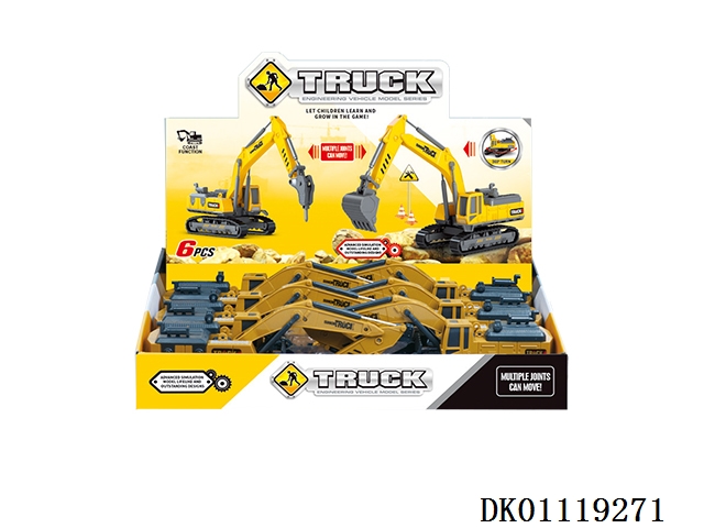 Simulated sliding large engineering vehicle 6pcs/box