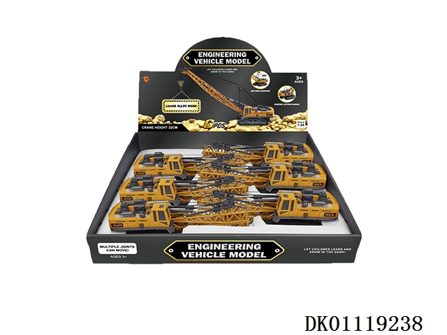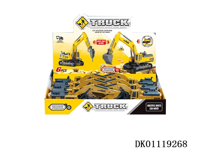 Yellow alloy simulation sliding large engineering vehicle 6pcs/box