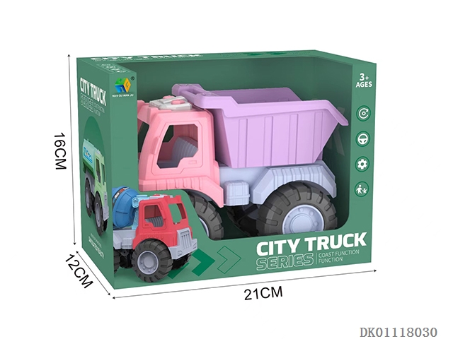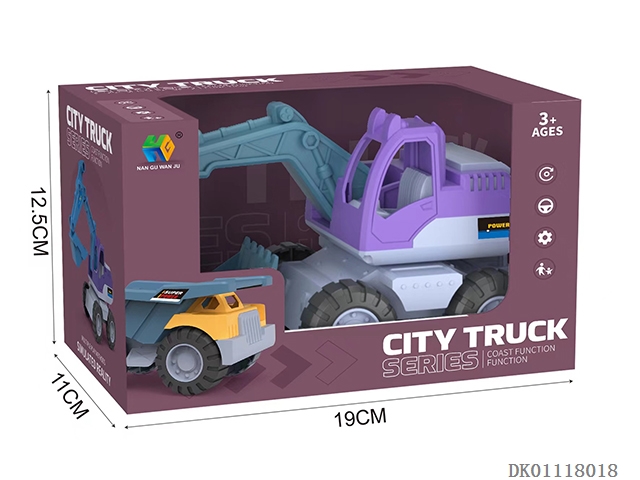 Environmentally friendly straw color sliding engineering vehicle (excavator and tipper)