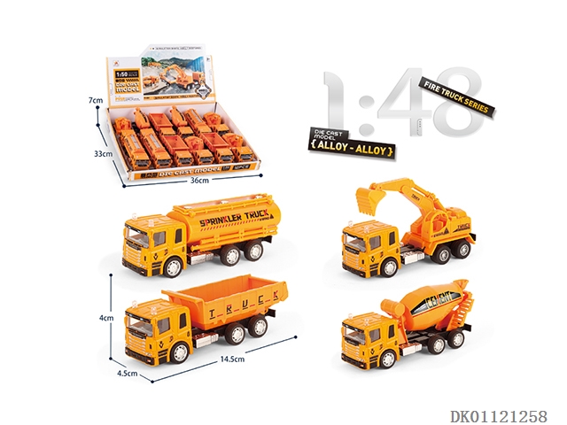 1: 48 Sliding alloy engineering vehicles, 4 models, 12pcs/box