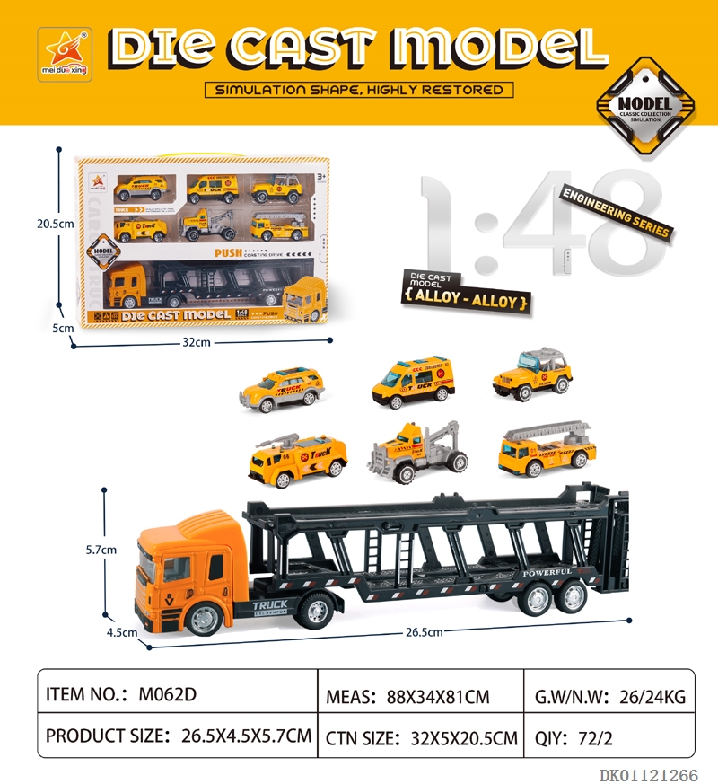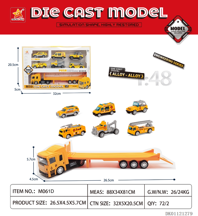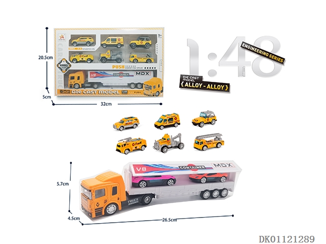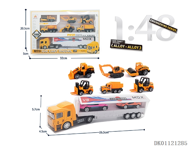 1: 48 Sliding alloy double door containers and 6 sliding alloy engineering vehicles