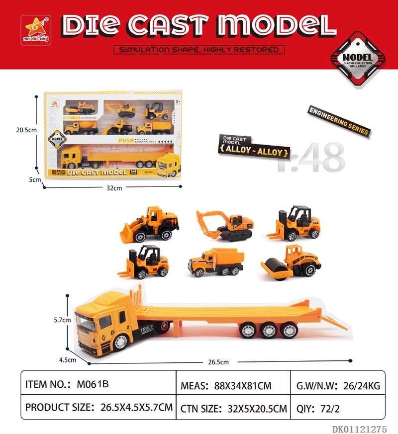 1: 48 Sliding alloy pallets and 6 sliding alloy engineering vehicles