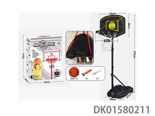 2.7-Meter triangular adjustable iron hoop iron basketball stand (basketball hoop diameter 39cm with 25cm basketball)
