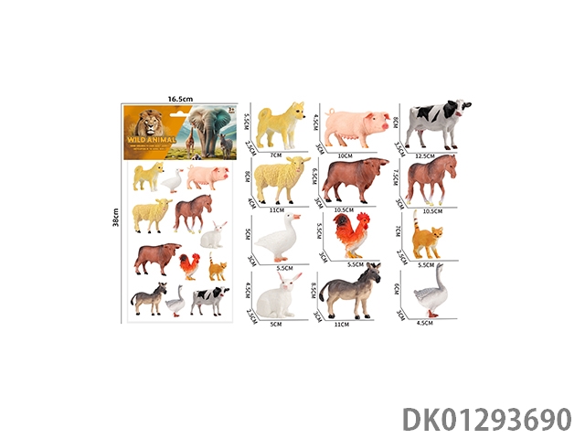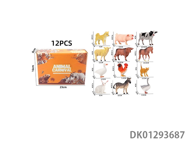 12 Animal model display boxes for poultry animals, including puppies, pigs, cows, mules, horses, cats, chickens, ducks, geese, and poultry animal series, available in 12pcs per box