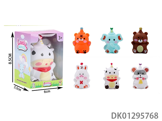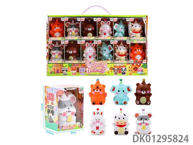 Happy party with 6 animals, rabbits, tigers, cows, elephants, bears, and mice (12pcs/box)