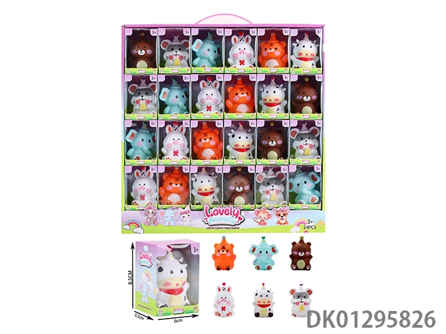 Happy party with 6 animals, rabbits, tigers, cows, elephants, bears, and mice (24pcs/box)