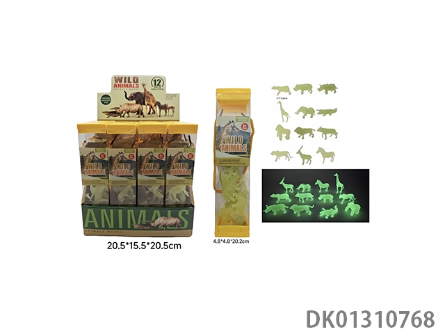 12 Animal model display boxes for wild animals, including tigers, elephants, giraffes, pandas, zebras, and a set of 12pcs per box