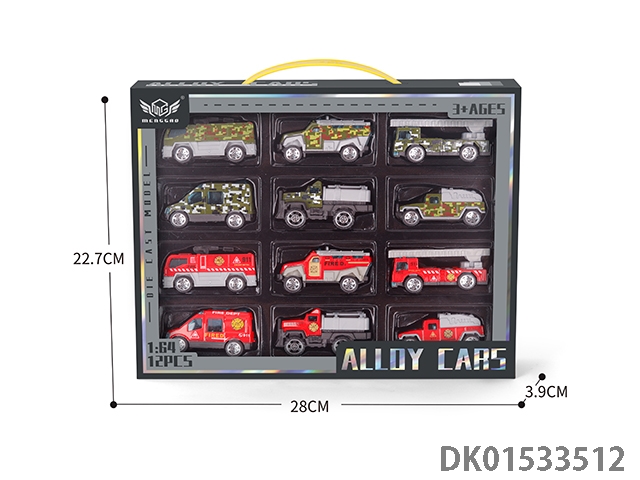 Alloy city six color firefighting set (6 pieces and red small container truck)