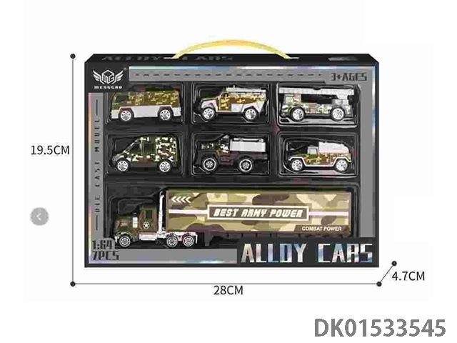 Alloy long headed military artillery vehicle and military green helicopter set (6 units and military green small container truck)
