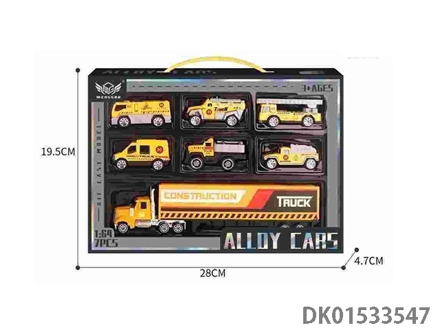 Alloy yellow fire truck set (6 pieces and yellow small container truck)