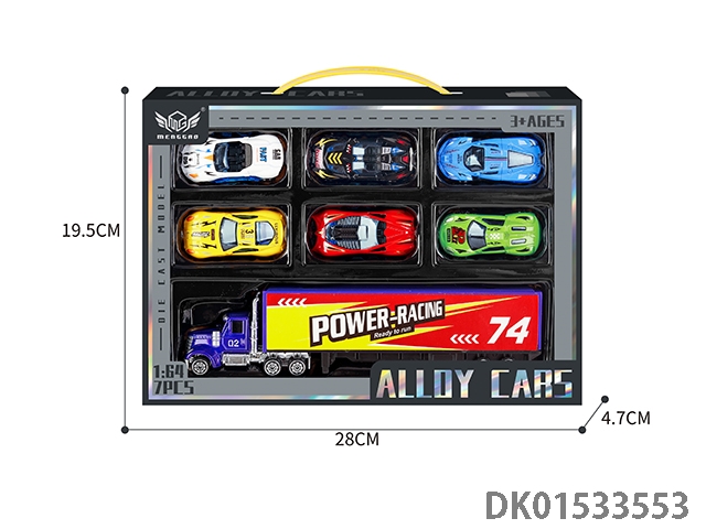 Alloy graffiti sports car set (6 pieces and blue small container truck)