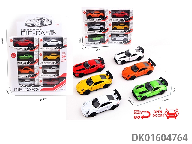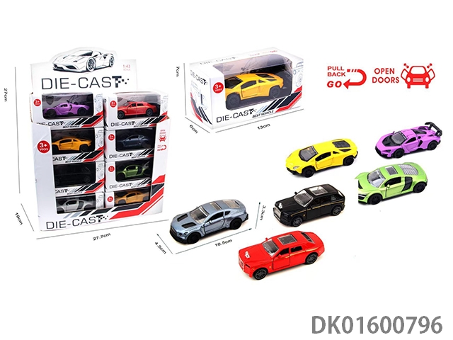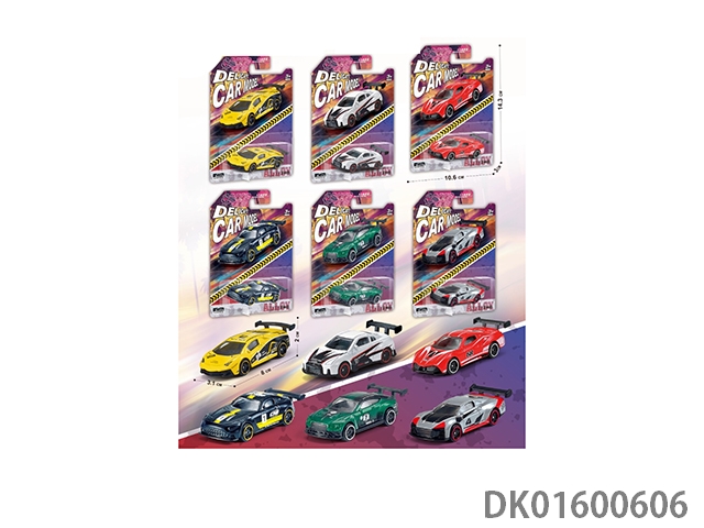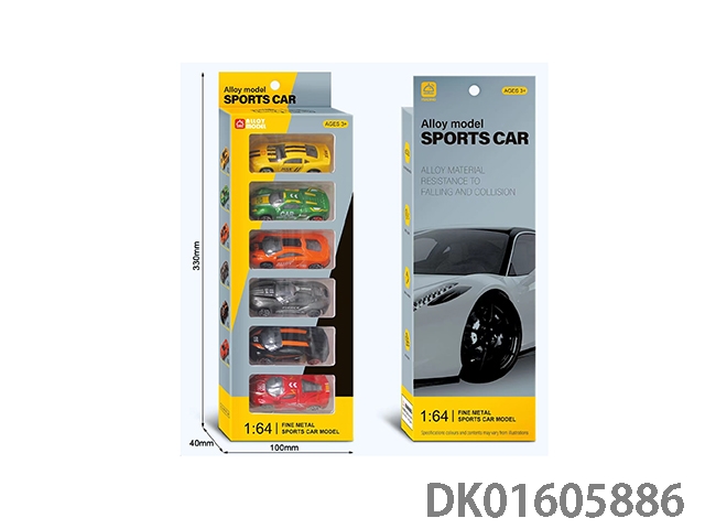 Cute cartoon alloy car with lights and music (six mixed versions), set of 6 pieces/box