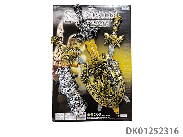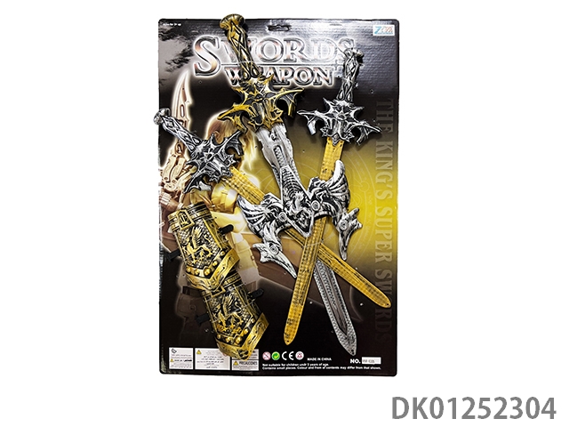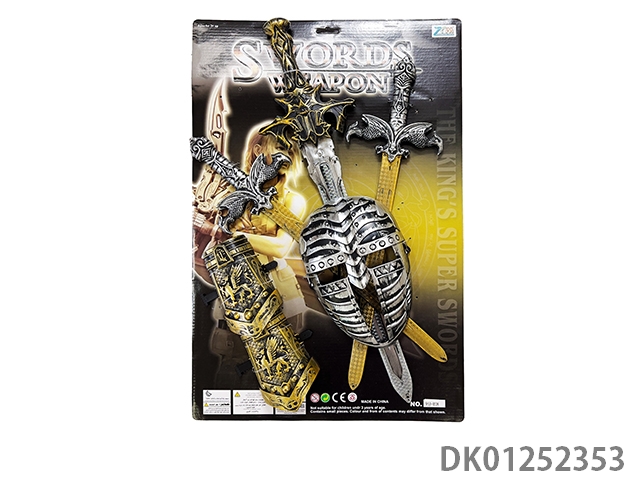 Green and gold three swords mixed with mixed colors, masks, and double wristbands