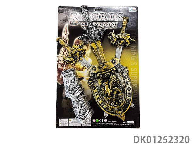 Green and gold swords, double wristbands, and handguards