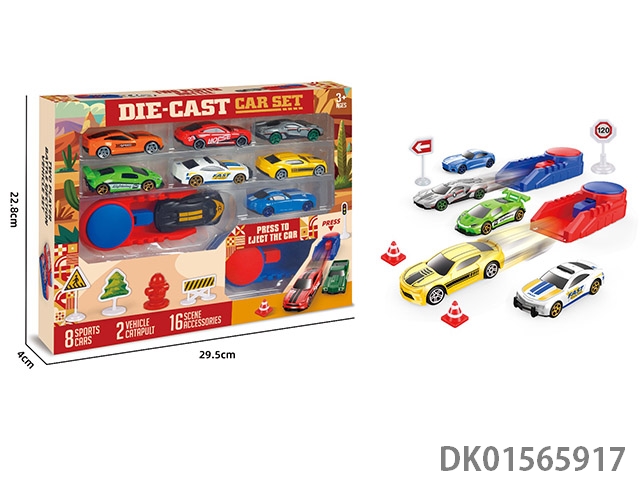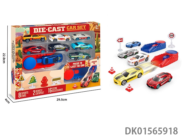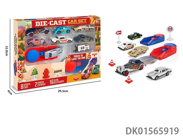 1: 64 Catapult sliding alloy car (16 pieces and 2 catapults)
