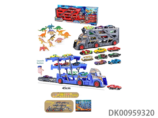 Folding ejection container truck with alloy trolley 8 dinosaurs 12 maps 1 road sign 9 pieces