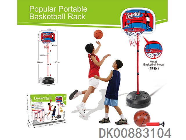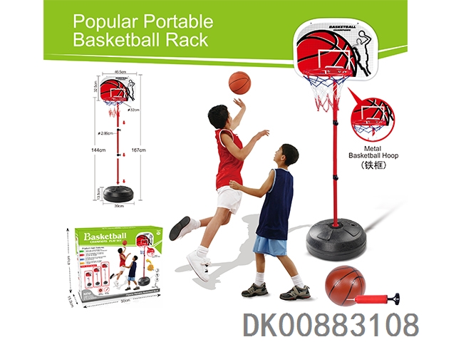 Metal hoop vertical basketball stand 4 sections and 13 cm basketball