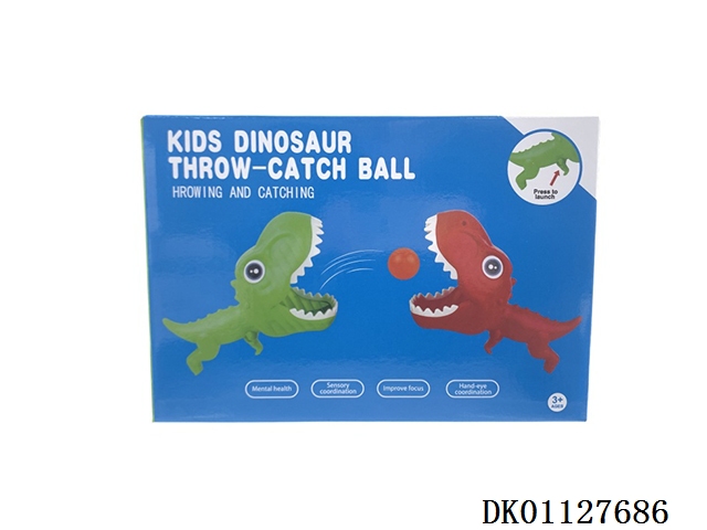 Dinosaur throwing and catching ball [with 5 balls