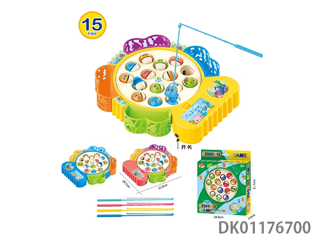 Rotating fishing set (6 children’s songs with electric dual color lighting, 3 aa batteries not included) with 3 fishing and 3 yellow ducks