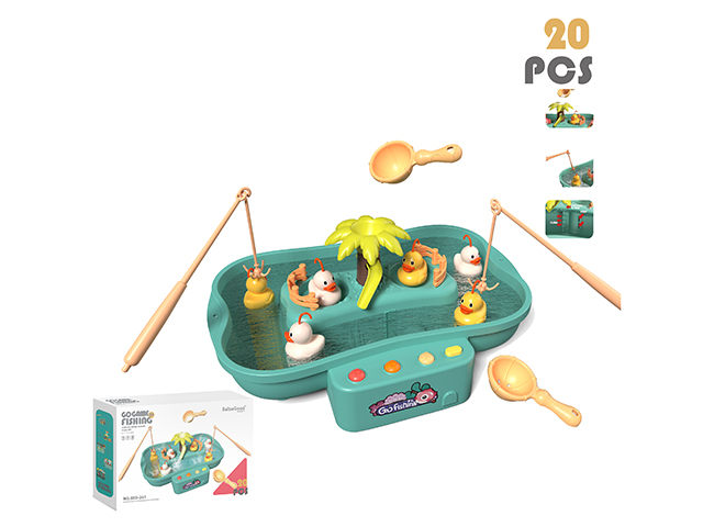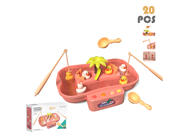 Rotating fishing set (6 children’s songs with electric dual color lighting, 3 aa batteries not included) with 3 yellow ducks and 3 white ducks