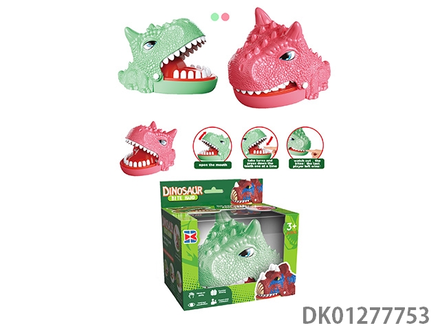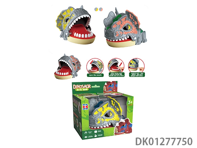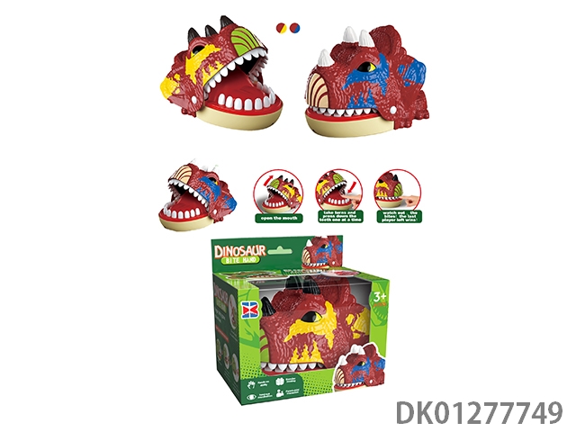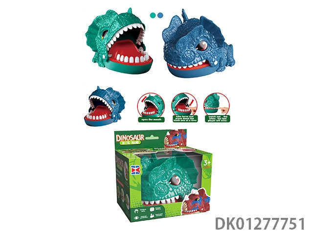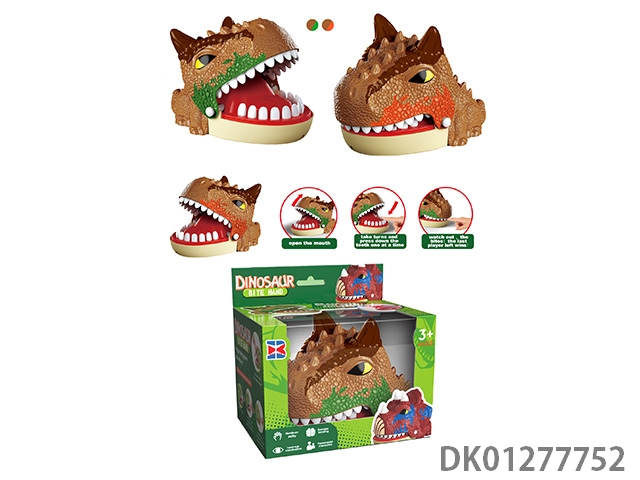 English bite hand medium spray brown red simulated triceratops, 2-color