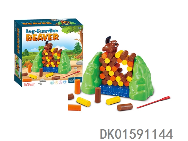 Beaver guarding wooden strips