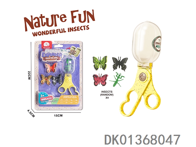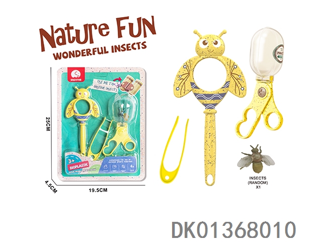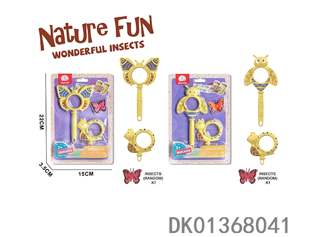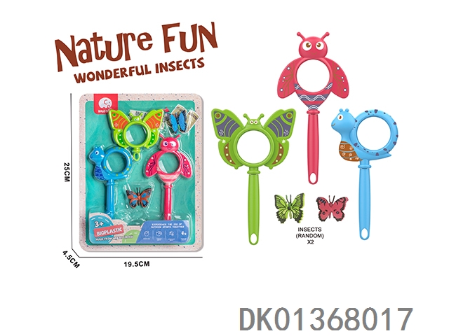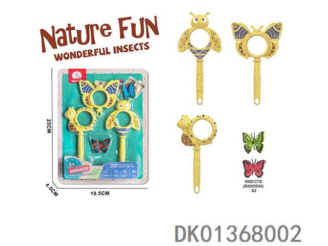 Wheat straw material science and education magnifying glass 3 pieces, equipped with 2 insects