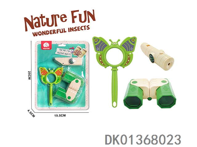 Solid color educational magnifying glass telescope compass set