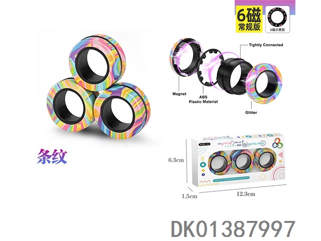 Striped magnetic ring decompression toy