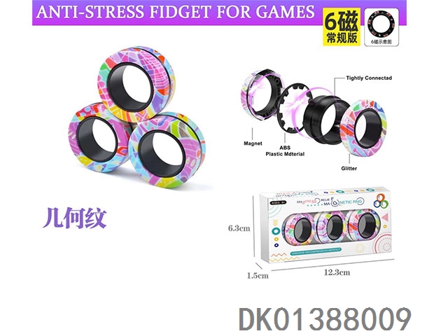 Geometric pattern magnetic ring decompression toy