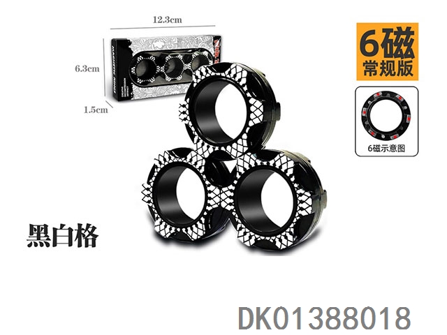 Black and white grid gear magnetic ring decompression toy
