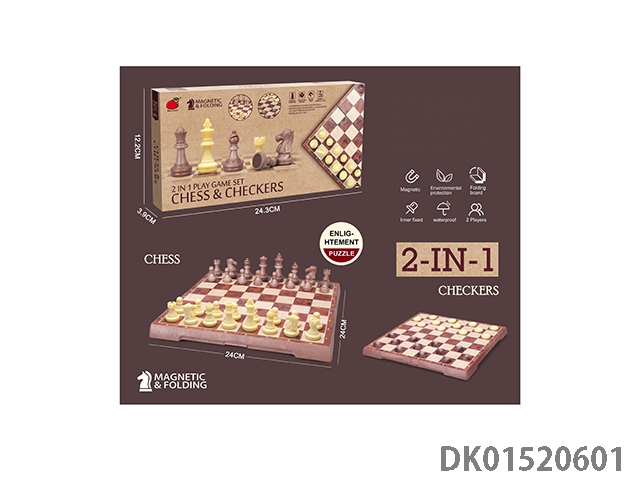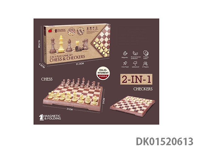 2-In-1 (folding magnetic wood grain chess/checkers)
