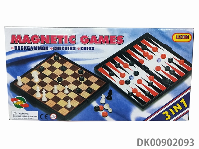 Magnetic chess, backgammon and checkers 3 in 1
