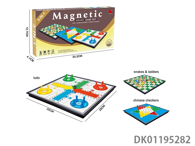 3-In-1 (folding magnetic checkers/snake ladder chess/dice chess)