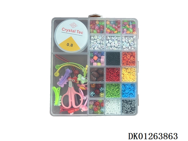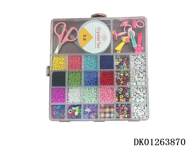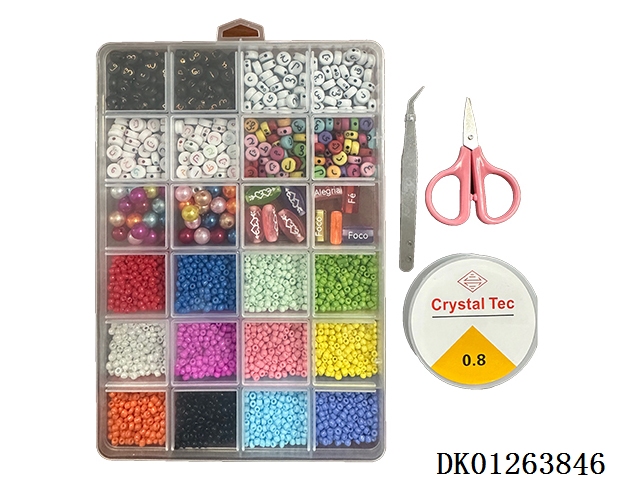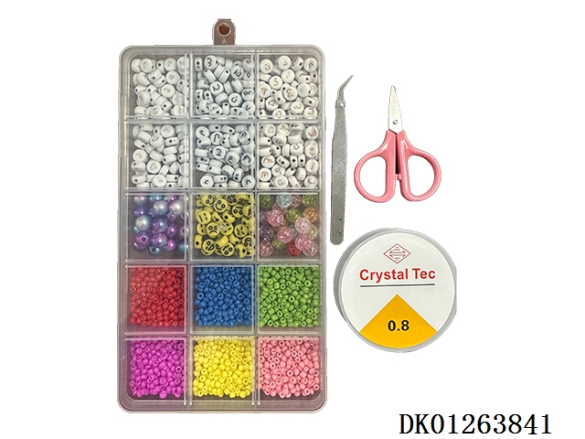 New 15 grid regular beads, large ceramic pieces, and fine bead string box (with scissors and wire box)