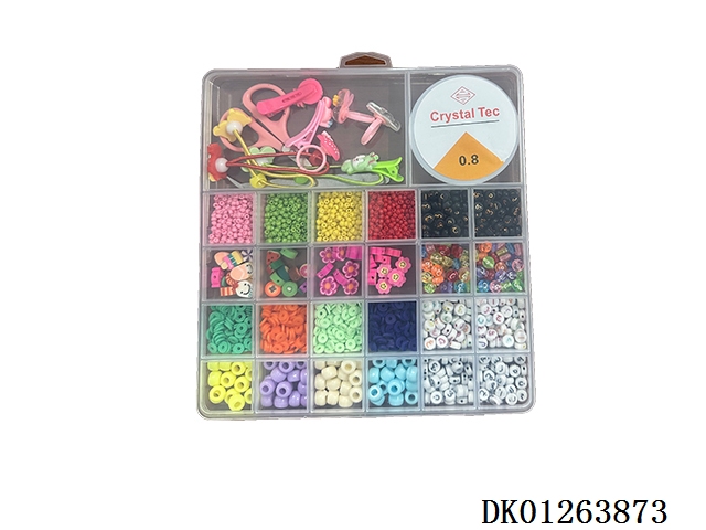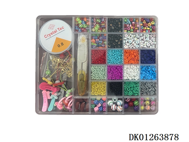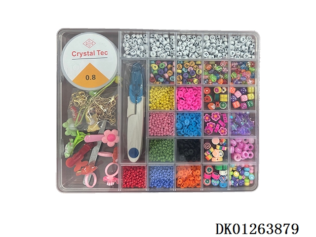New 28 grid small soft clay and colored beads, as well as fine beads and large ceramic bead string (with scissors, wire box, and clip)