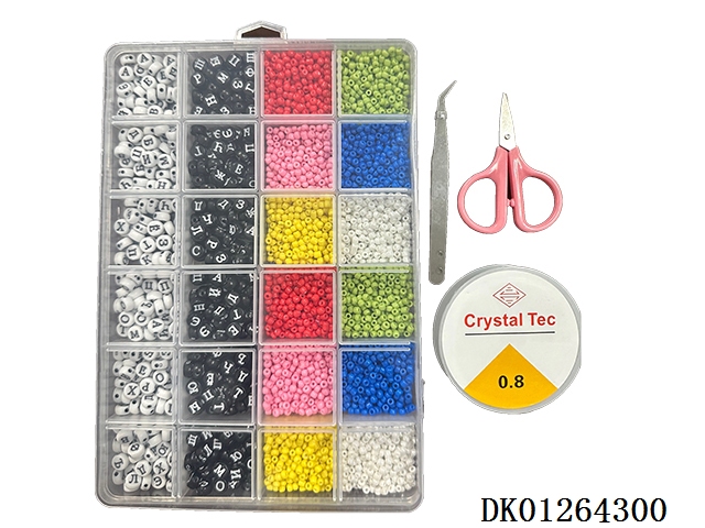 New russian 24 grid bead box (fine beads and letter beads with soft ceramic pieces and wire box with scissors and clips)