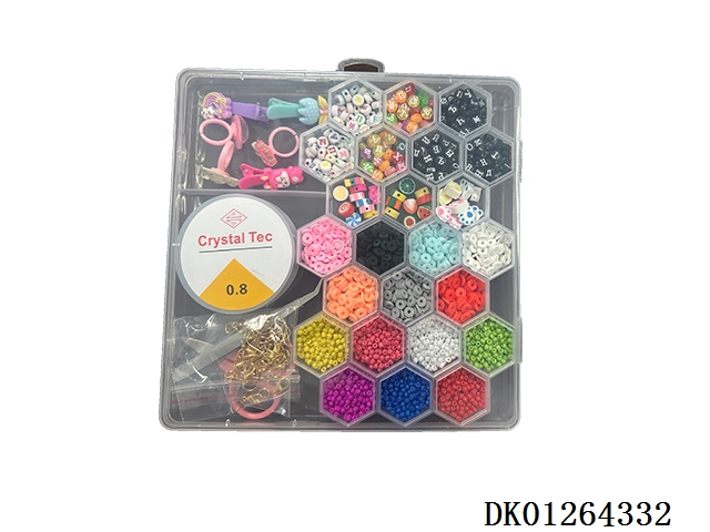 New russian 26 grid honeycomb bead box (with hair clip and ring, lobster clasp and earrings, ceramic and fine beads, and soft film wire box, scissors and clips)