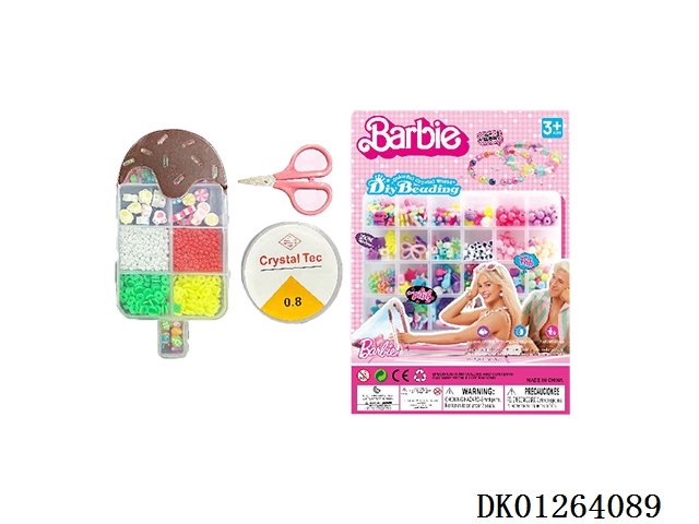 New russian 9-grid ice cream printed beaded box (with fine beads and soft pieces, ceramic pieces and wire box and scissors)