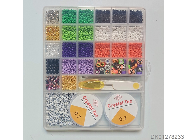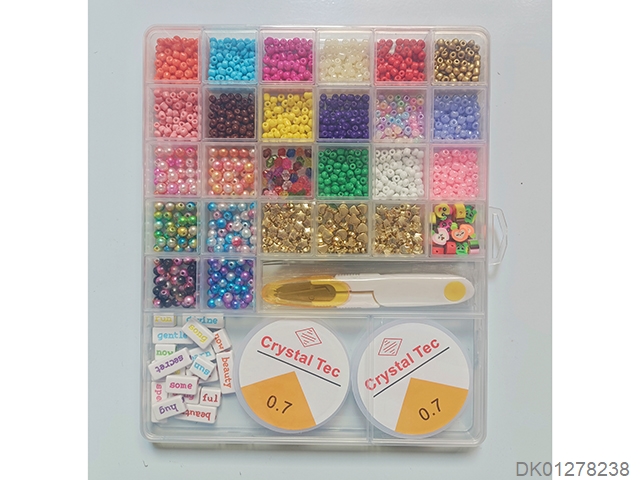 4 Cm beads and separated beads, soft pottery and letter beads, and 6 mm pearl colored beads and scissors tweezers thread (28 grids)