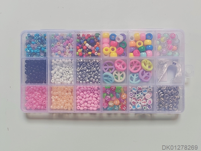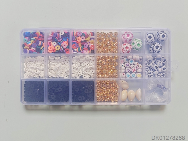 Barrel beads and soft clay, and pendant beads and threads (18 grids)
