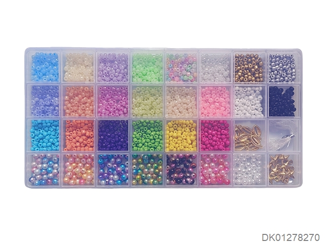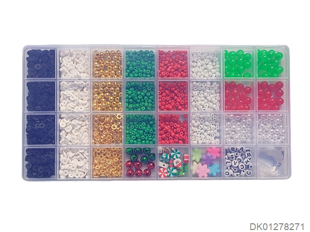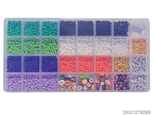 4 Cm beads and 6 mm pearl gold beads, soft clay and letter beads, separated beads and threads (32 grids)